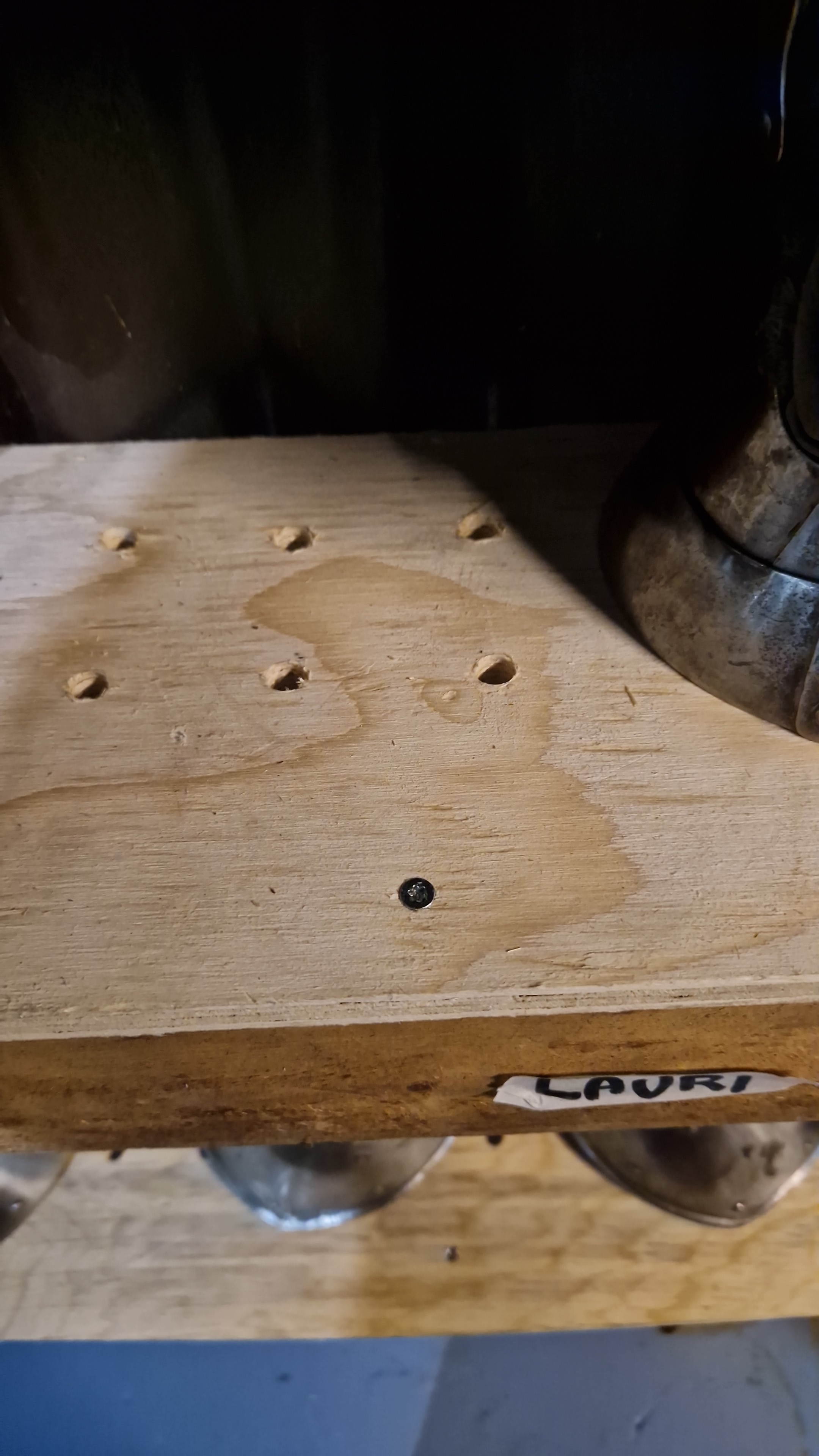The gym improvements have continued with the rebuilding of the weapon racks. The longsword storage space was slightly decreased to make room for gauntlet shelves. These have ventilation holes drilled through, to help air out the stinky gauntlets. The addition of the gauntlet storage means that the shelving units facing the entrance can now be used for helmets only.