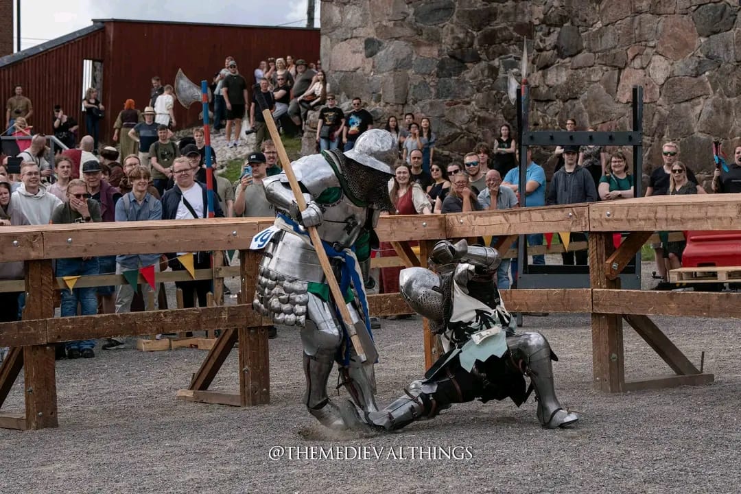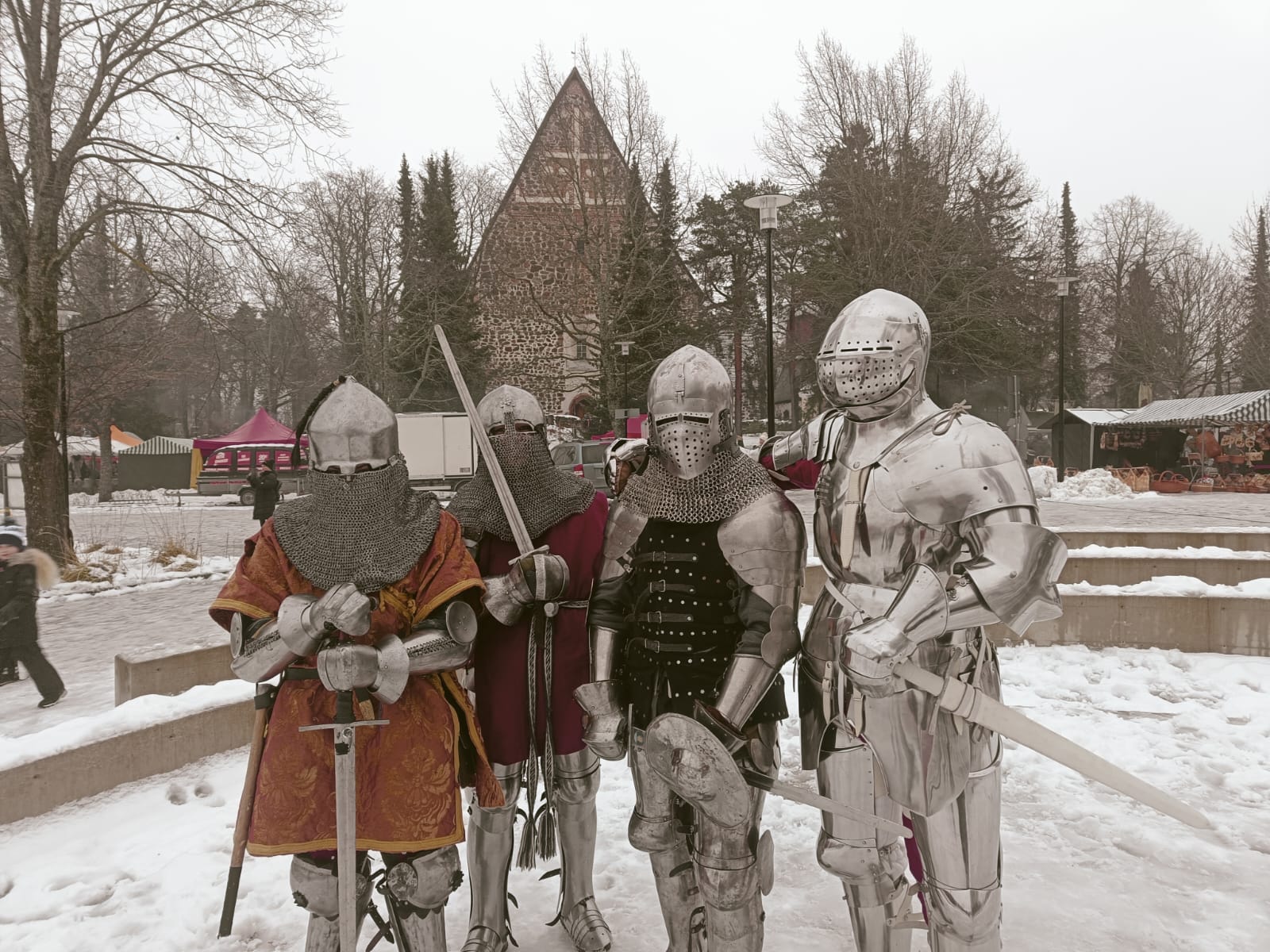 HMC palasi tänä vuonna Vantaalle Helsingan keskiaikapäivä 2024-tapahtumaan 10. elokuuta. Esitimme haarniskoissamme useita 1vs1-taisteluja mahtavan yleisön ja kauniin Pyhän Laurin kirkon edessä!