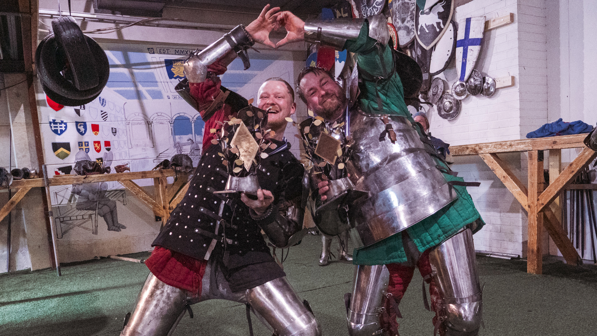 10 years after buhurt was last exhibited at Helsinki’s Ropecon, HMC brought steel fighting back to the event on Saturday 20.7.2024. Our fighters showed off their skills in 1vs1 combat to a packed audience, and even featured on YLE TV1 news!