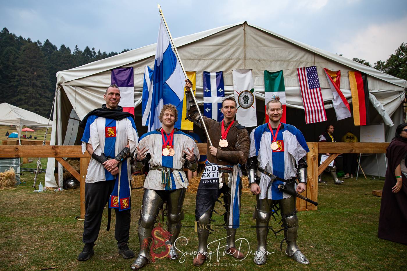 HMC’s men’s 5vs5 team, bolstered with fighters from MCS Aboensis and Armored Combat Lapland, fought hard against international competition. While multiple injuries forced the team to pull out towards the end, their valiant efforts brought glory to our club!