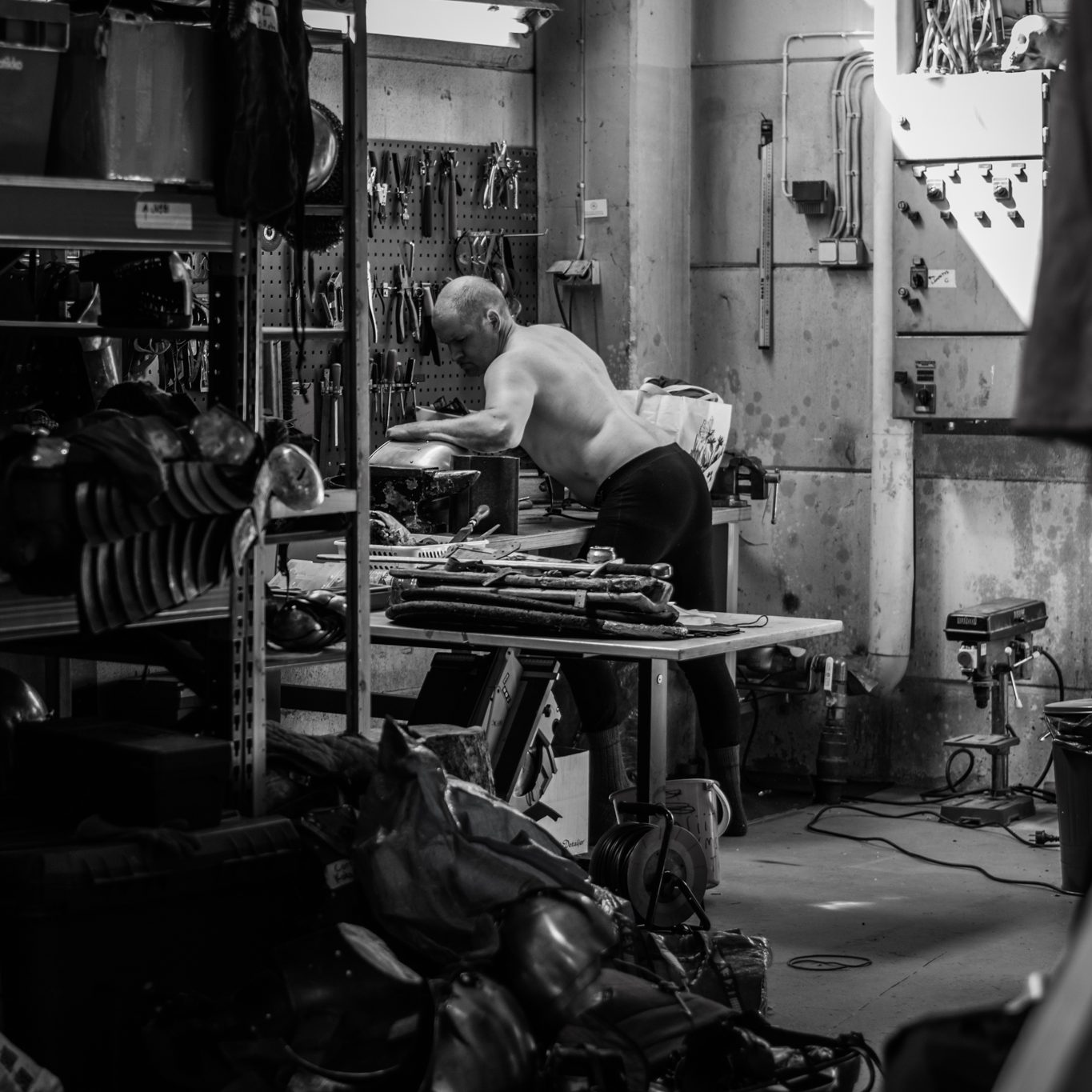 The training hall also has a well-stocked workshop corner with a variety of tools and materials available for fee-paying members to use freely.